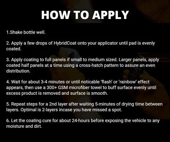 HybridCoat fuses SiO2 ceramic coating with graphene oxide for unrivaled protection and shine. This advanced formula creates a durable, hydrophobic barrier that repels water, dirt, and contaminants, ensuring a pristine, long-lasting finish on your vehicle.