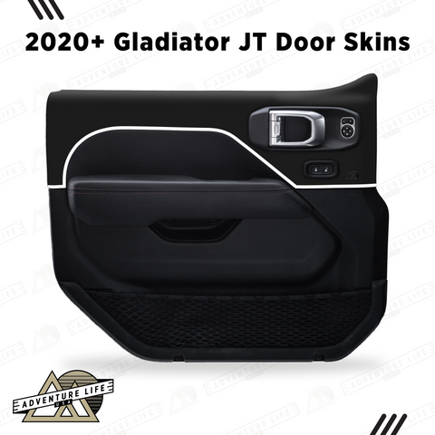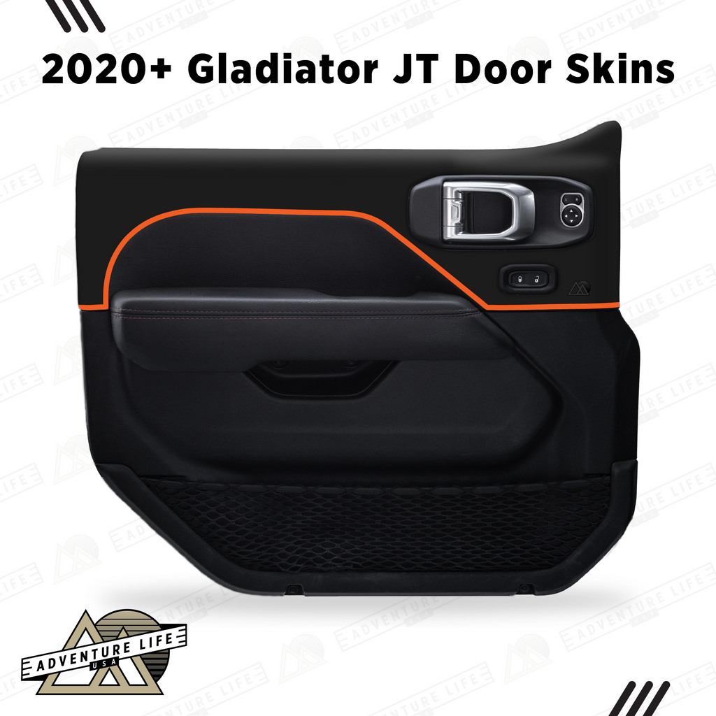 Upgrade your 2020+ Gladiator JT with Adventure Life’s Matte Black Door Skins—the perfect blend of style and function. Made from premium automotive vinyl, these skins wrap flawlessly around your doors for a durable, weather-resistant shield against dirt, mud, and daily adventures. The matte black base with gloss outline colors provides a sleek, head-turning design that complements any off-road build.