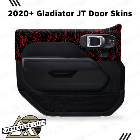 Upgrade your 2020+ Gladiator JT with Adventure Life’s Colored Topo Door Skins—the perfect blend of style and function. Made from premium automotive vinyl, these skins wrap flawlessly around your doors for a durable, weather-resistant shield against dirt, mud, and daily adventures. The black base with colored topo lines provides a sleek, head-turning design that complements any off-road build.