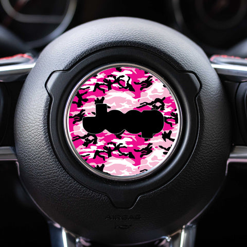 Customize your interior with this camouflage print decal that is precisely cut and intentionally designed to fit directly onto your factory steering wheel around the interior emblem.