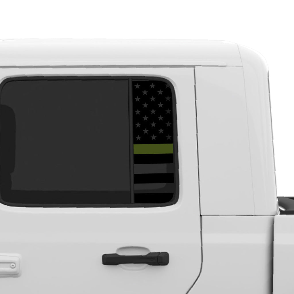 Elevate your Jeep's aesthetics and showcase your patriotism with our American Flag window decals. Crafted from premium optically clear window vinyl, these decals are designed for those who seek to express their love for the USA with style and pride. Whether you're a dedicated Gladiator owner or a Jeep enthusiast, these decals are the perfect addition to your vehicle.