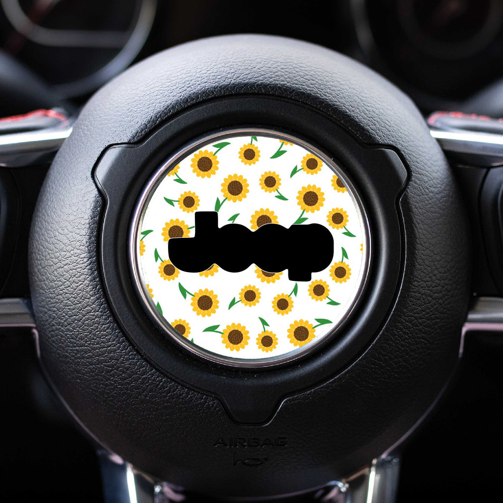 Customize your interior with this floral print decal that is precisely cut and intentionally designed to fit directly onto your factory steering wheel around the interior emblem.