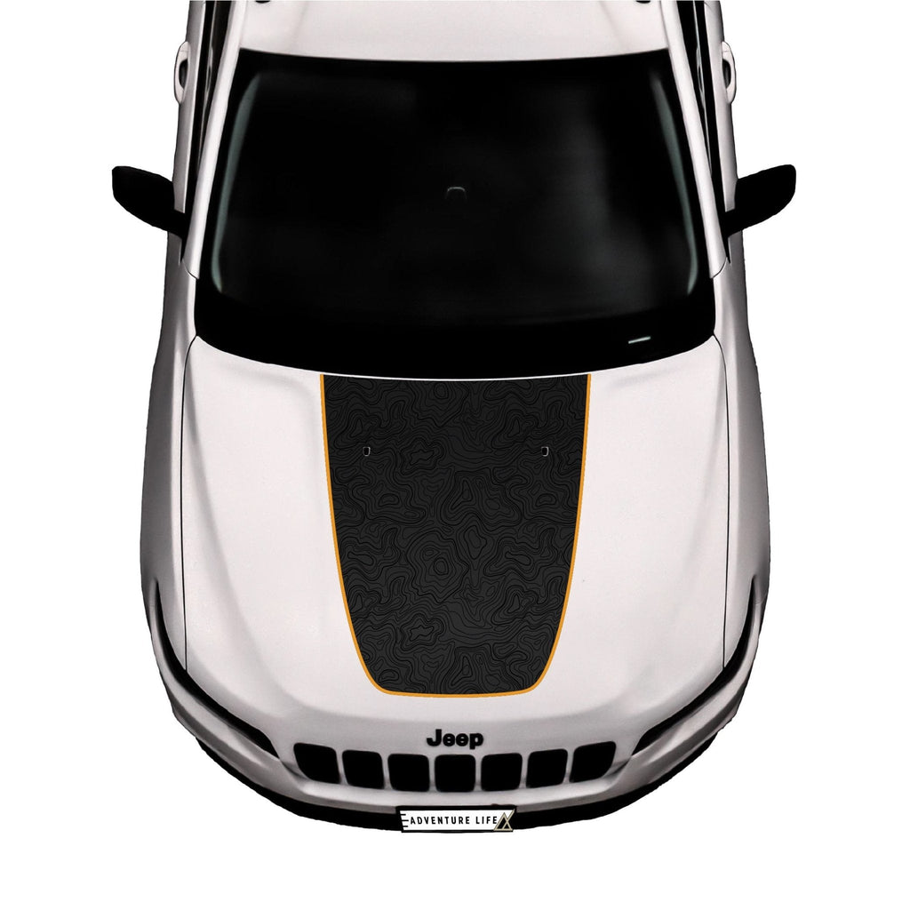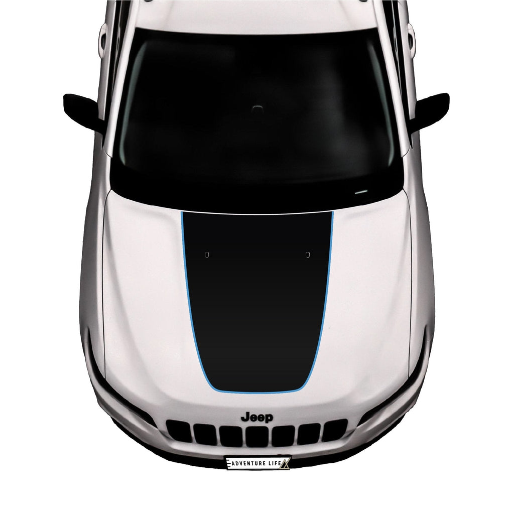 Upgrade the look of your Jeep Cherokee KL with this stylish and functional hood graphic, proudly designed and manufactured in the USA. This graphic is specifically designed to cut out hood glare from the sun shining off your hood while adding a touch of style to your vehicle.