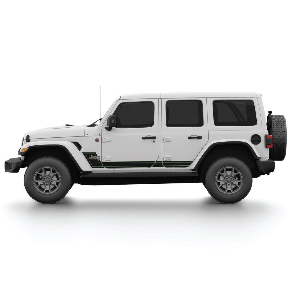 Enhance your Jeep's appearance with this premium Lower Side Stripe, and let your vehicle's personality shine. Whether you're aiming for a bolder look, extra paint protection, or a unique customization option, our product has you covered. Elevate your Jeep's aesthetics with ease and confidence today!