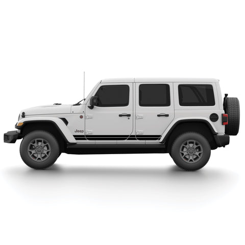 Elevate your Jeep Wrangler JL's aesthetic with our Rocker Double Stripe Off-Road Decals and Stickers. Choose from a selection of graphics to give your Wrangler a unique and eye-catching look. Our comprehensive Wrangler JL Graphics Kit includes precise sections for both the driver and passenger sides, along with easy-to-follow installation instructions.