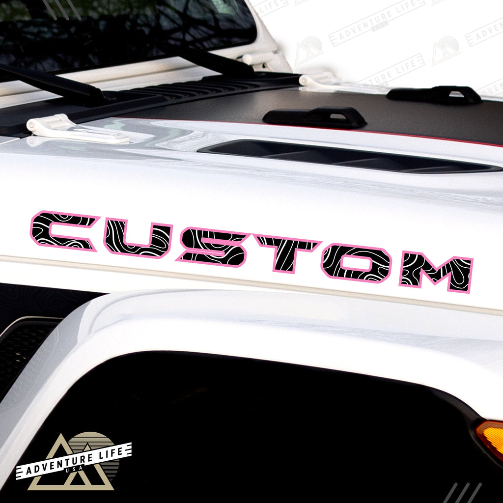 Includes: (2) Custom Text Decals, one for each side of the hood