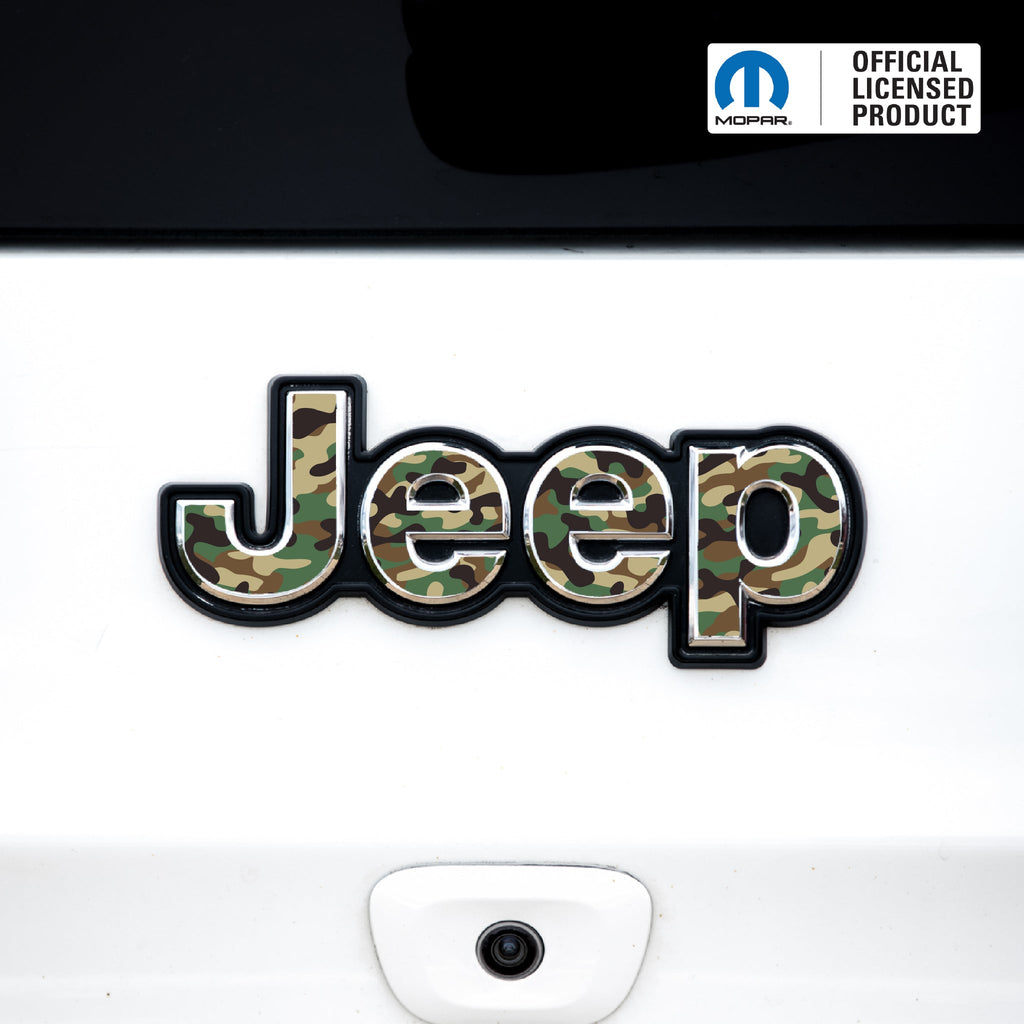 Give your Jeep a rugged, trail-ready look with an official Mopar licensed “Jeep” emblem overlay decal set. These are vinyl decal stickers designed to apply directly over your existing Jeep front grille and rear liftgate emblems — not replacement or 3D badges. Made from premium automotive-grade vinyl, each overlay features a bold camo print design that delivers adventurous style while keeping a clean, factory-quality appearance.