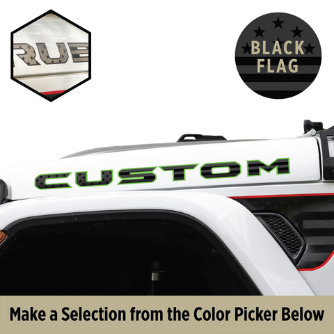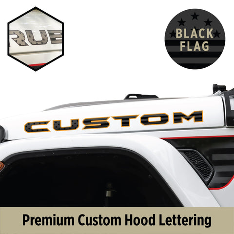 Premium Black Flag Hood Lettering | Set of 2