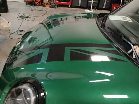 Upgrade your Mini Cooper Sport’s style with these unique faded hood stripes—order today!