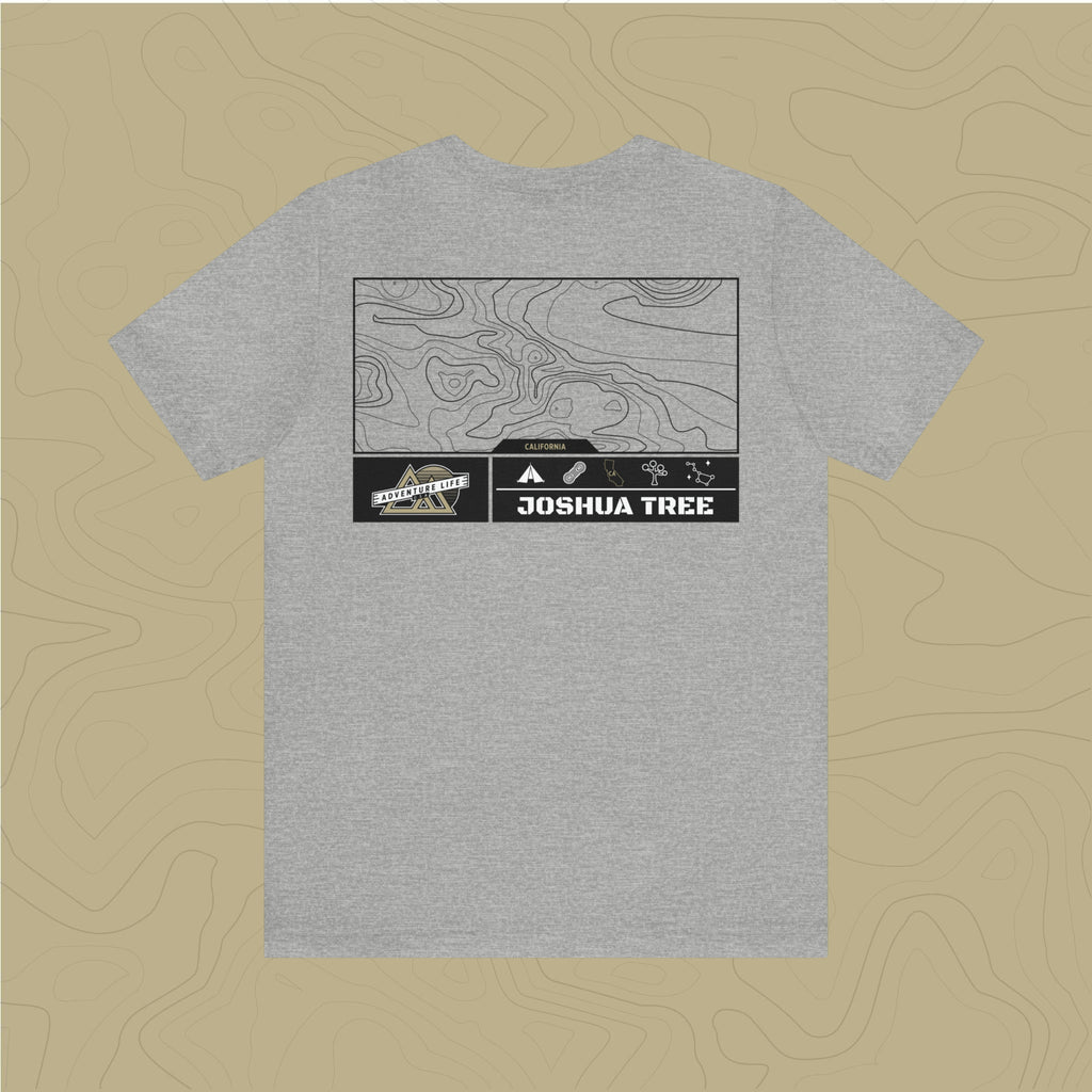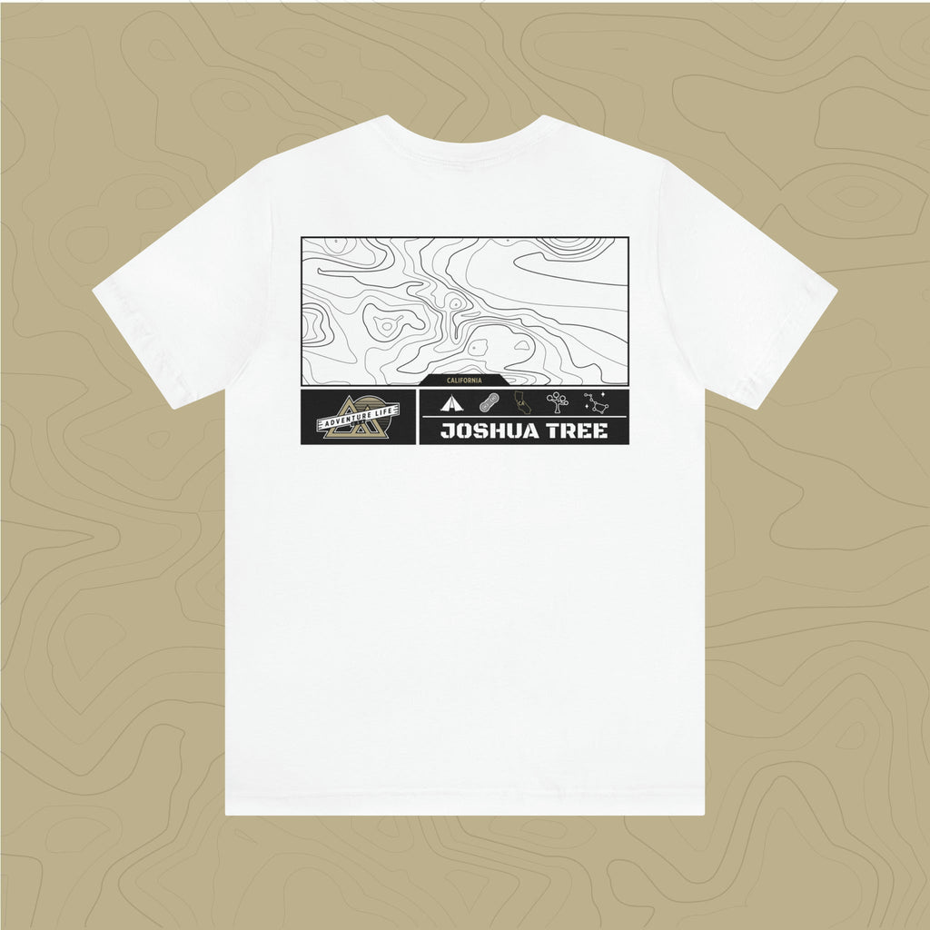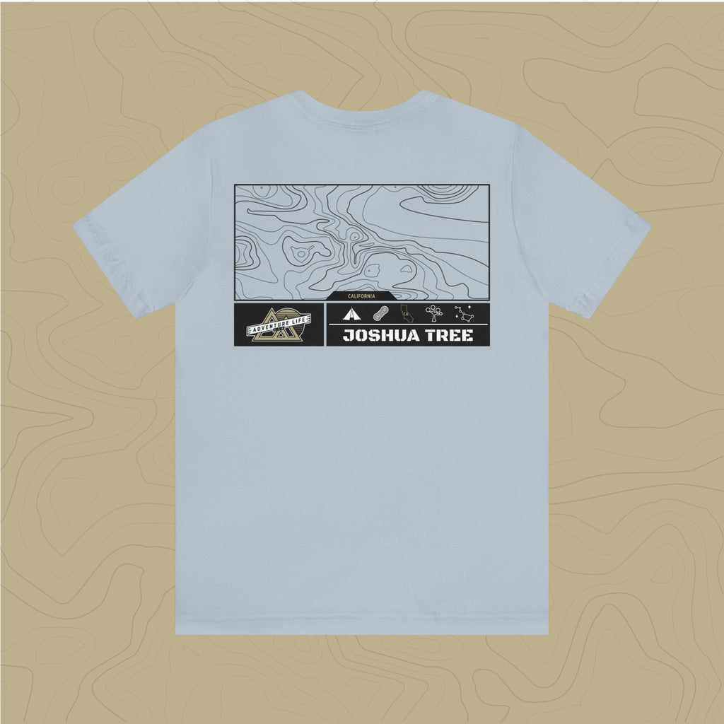 Embrace the adventure of Joshua Tree National Park with our topographic map tee, a tribute to nature's beauty.