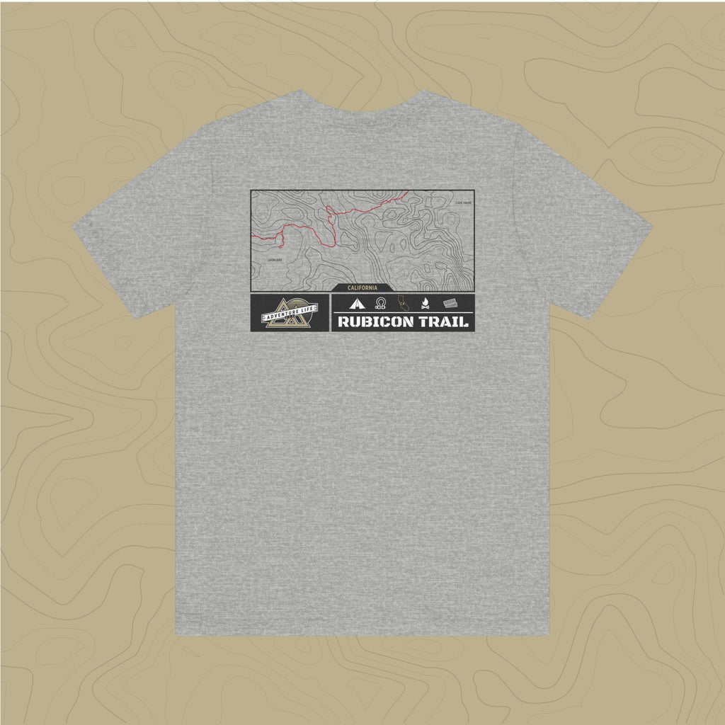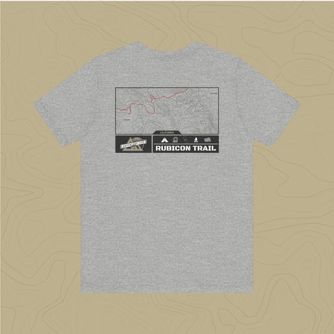 Embrace the adventure of the untamed Rubicon Trail with out topographic map tee, a tribute to nature's rugged beauty.