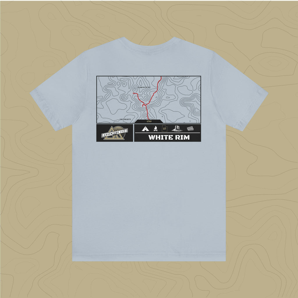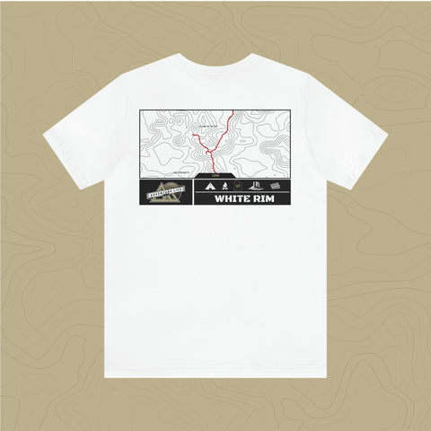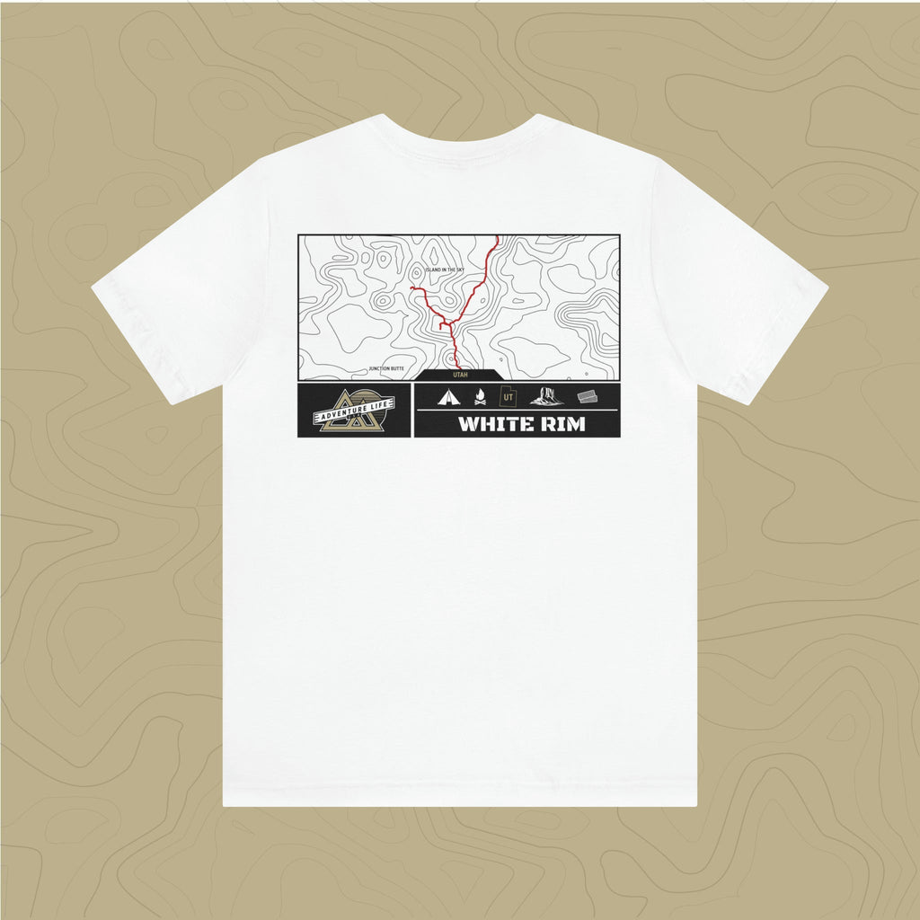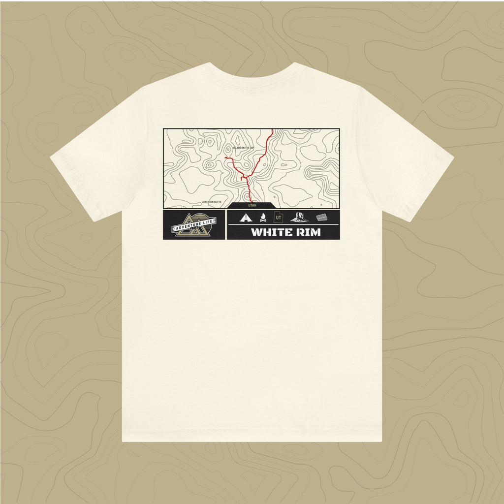 Embrace the adventure of the untamed White Rim Trail with out topographic map tee, a tribute to nature's rugged beauty.