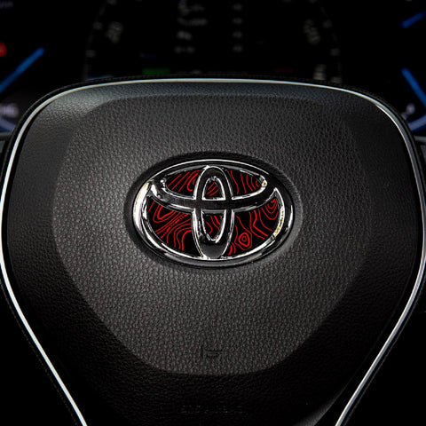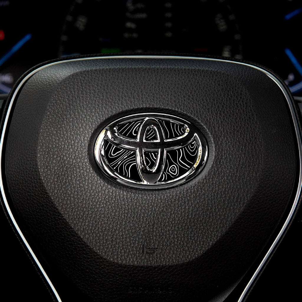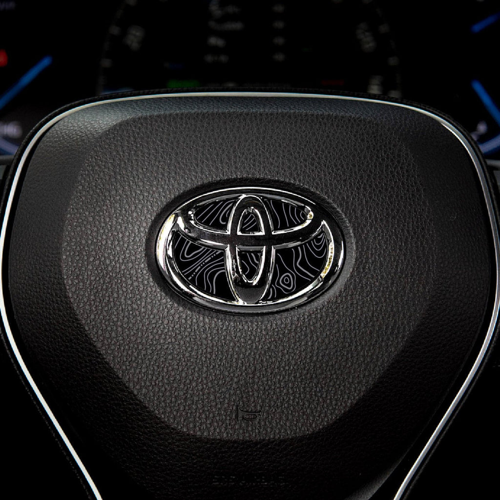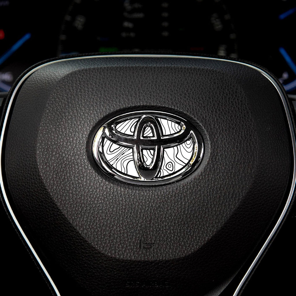 Customize your interior with this topo map decal that is precisely cut and intentionally designed to fit directly onto your factory steering wheel around the interior emblem.