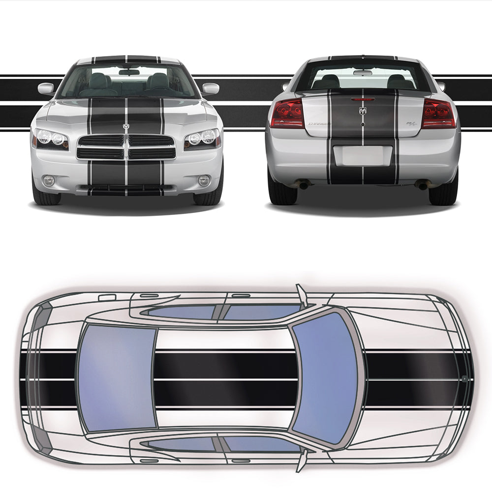 Indulge in a premium upgrade for your Dodge Charger with our dual 12" Racing Stripes with pins kit. The sleek finish, along with the meticulously pre-cut sections, makes installation a breeze, even for beginners. Elevate your ride's aesthetics and hit the road with a fresh, race-inspired look.